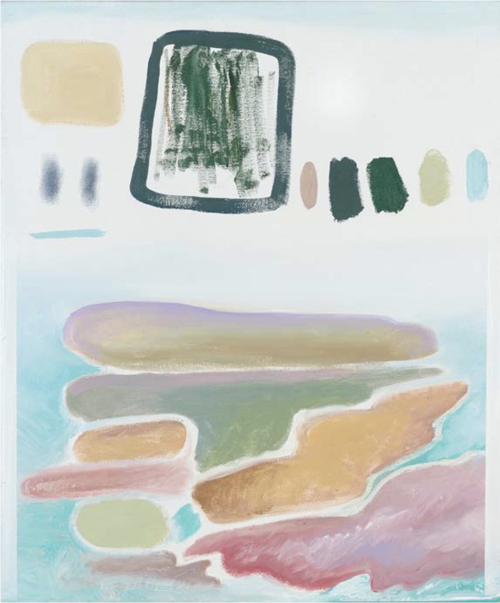 In contrast, Orlando (2024) introduces a more liberated, sunlit atmosphere. With its soft background of baby blue and white, the painting features a playful arrangement of squares in varying sizes and shapes. The work recalls the whimsical simplicity of a page from Paul Klee’s children’s book, while also embodying the spirit of an artist experimenting with new forms, colours and techniques—as though the canvas were a space to explore fresh possibilities.