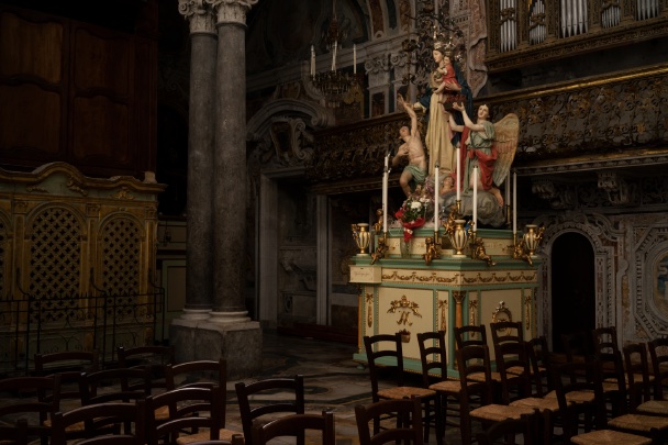 Palermo, Sicily, the procession chariot hit by a spot of sunlight in the Church of the Immaculate Conception 2017 by Monica Fritz