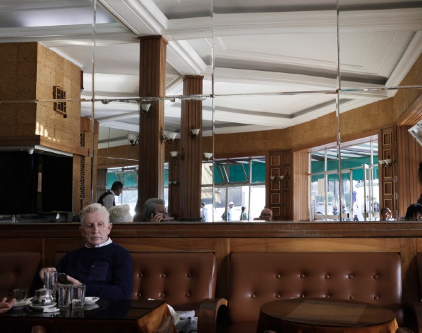 Tangiers, Morrocco Gran Café de Paris A frequenter is lost in thought in a symphony of shapes and reflections. 2023 by Monica Fritz