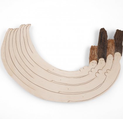 These lines, part of a poem by the multidisciplinary artist Sine İçli, are positioned in the lower-left corner of the opening wall – an ode to clay and its transformative process. This poem introduces İçli’s first solo exhibition at OG Gallery, Jittering Maps. In the top right corner, framed in earthy brown, lies a round white clay impression, the inverted faceprint of the artist’s own face. A dot, a world, a beginning and an end, all at once – a mark of the self. It signals to the audience: here she has journeyed inward, bringing back fragments from her underworld. Subtle, creative and deeply personal, these are the artifacts of her journey.