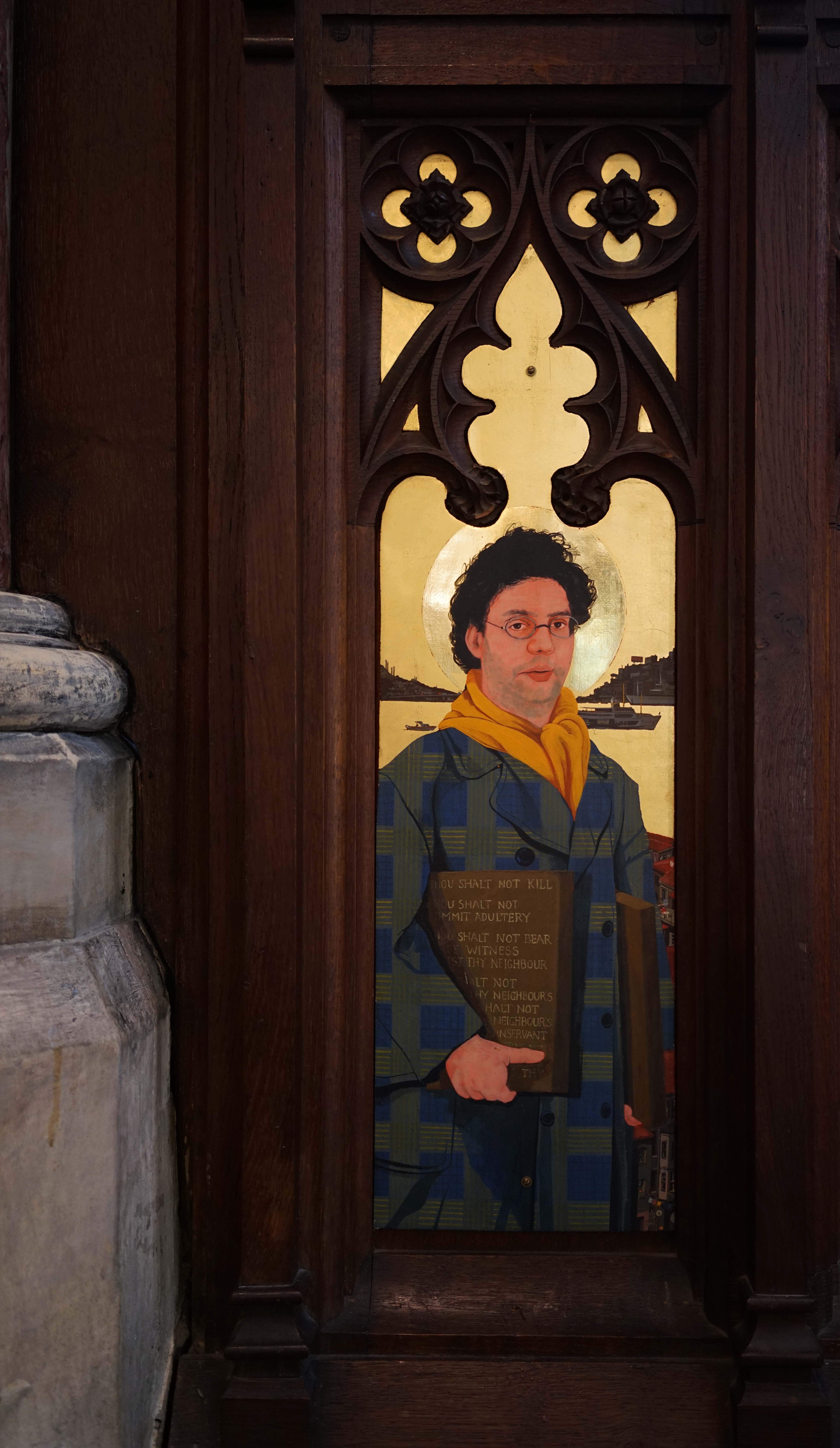 Moses, the most important prophet in Judaism and also important to Christianity, Islam and a number of other Abrahamic religions, is depicted holding the Ten Commandments. As a model for the Old Testament prophet, McCosh chose the journalist Andrew Finkel, thinly disguised by a five o'clock shadow. Andrew has lived in Istanbul for much of his life and is author of a much-awaited novel.