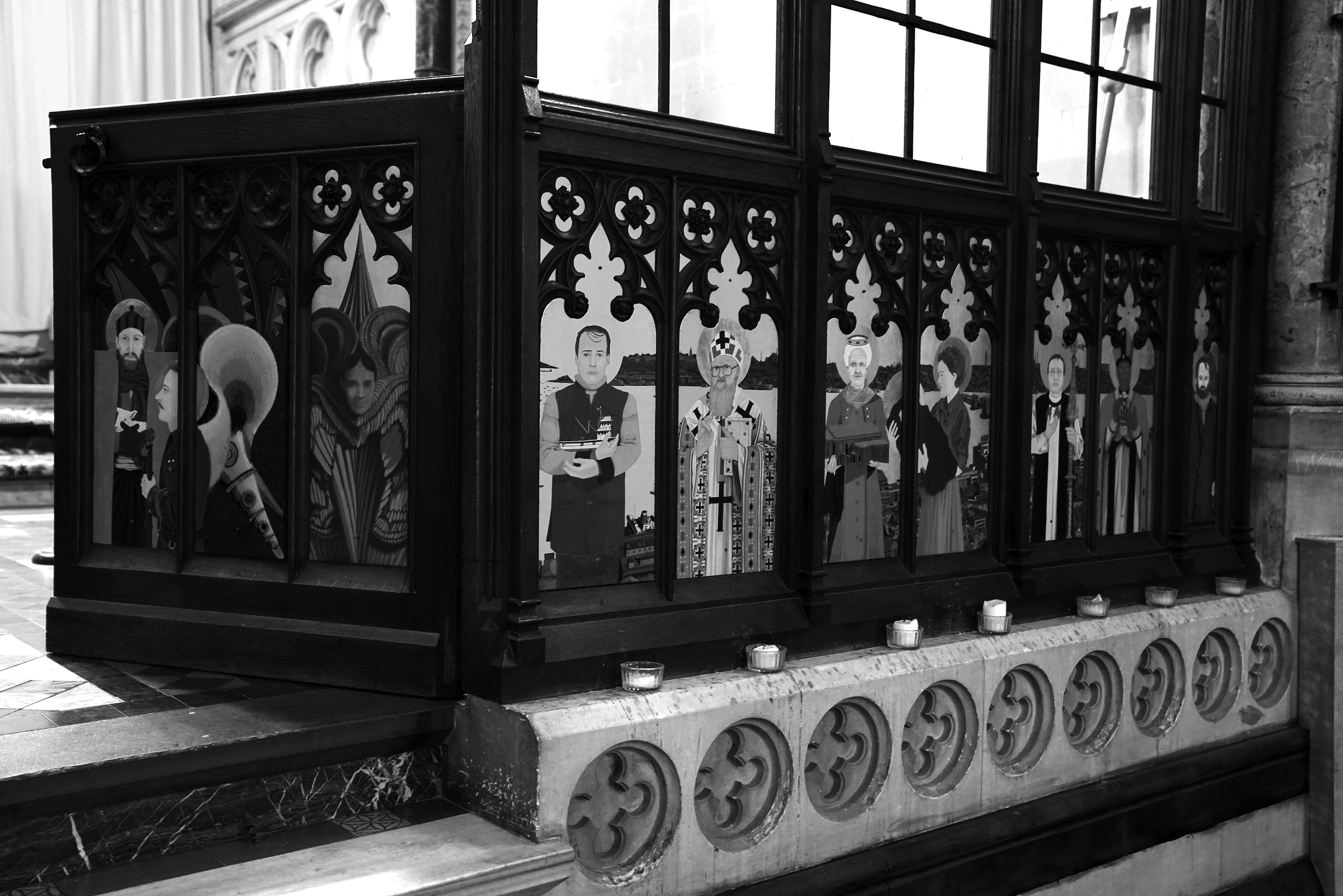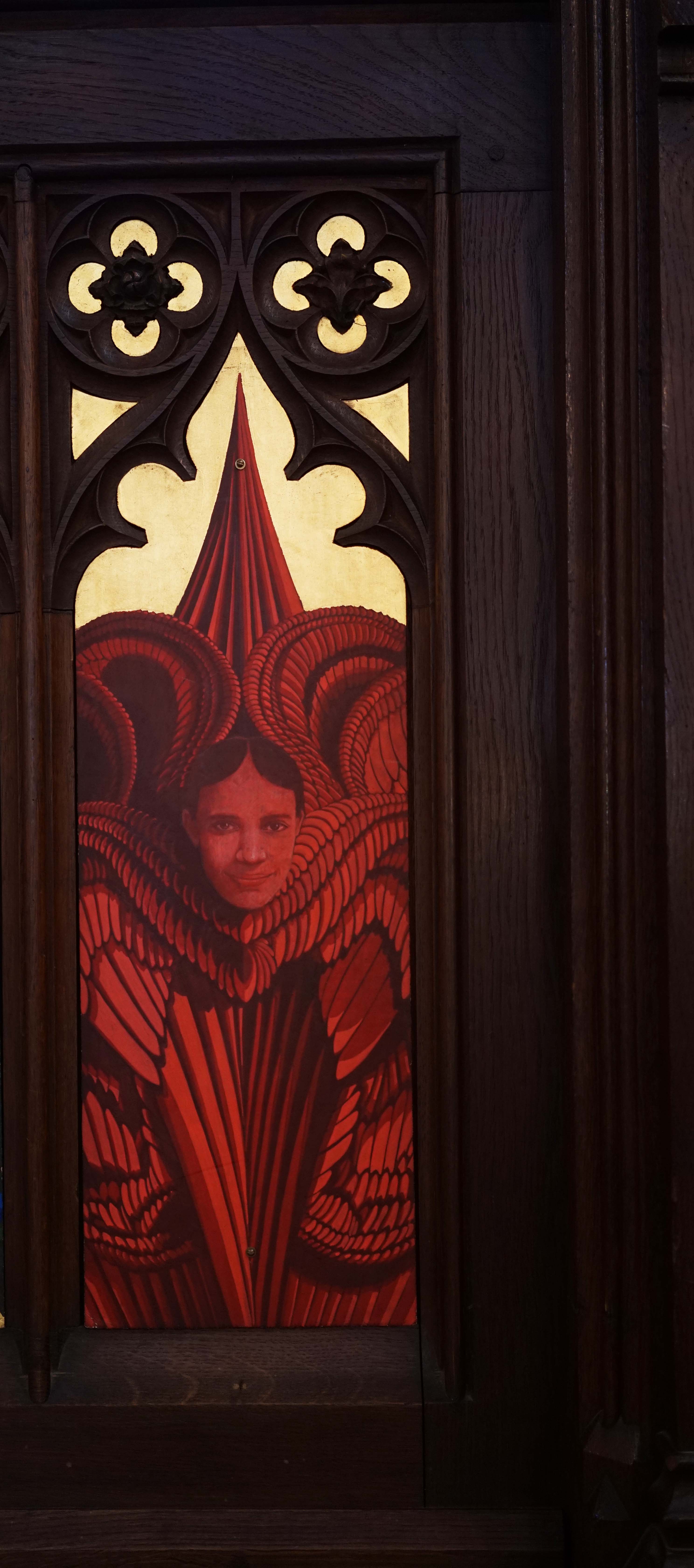The screen itself was only put in after the Gallipoli campaign of 1915–16 as a memorial to those who died there. It actually completes the original architect GE Street’s plan for the church. It was constructed England and sent over. Later on, I found a letter from a priest in the 1920s who had been planning to decorate the screen in a similar way but never got round to it.