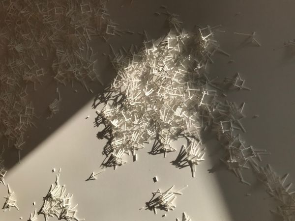 Using paper and ink, Nermin Er examines the masses. This solo exhibitions delves into themes of accumulation, disintegration and collection with three-dimensional micro spaces. The title of the exhibition takes its name from a poem by Lisa Robertson: