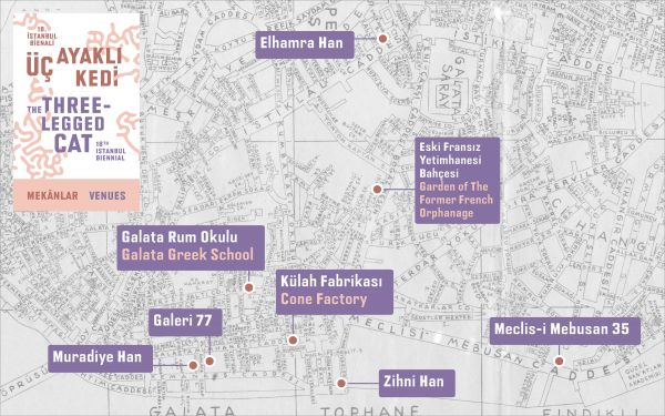 The IKSV Biennial opens to the public September 20th in 8 venues around the city, all located within walking distance of each other. Istanbul’s 18th biennial is curated by Christine Tohmé and sponsoned by the Koç Holding. The theme The Three-legged Cat. The first leg of the Istanbul Biennial focuses on themes of self-preservation and futurity. As part of the first leg, in 2025 will present works of 47 artists from around the world. The eight venues are: Galata Greek School, Zihni Han, Muradiye Han, Galeri 77, Cone Factory, Meclis-i Mebusan 35, Garden of the Former French Orphanage, and Elhamra Han. Participating artists in the first leg of the biennial: Galata Greek School – Nolan Oswald Dennis, İpek Duben, Ali Eyal, Simone Fattal, Lou Fauroux, Lungiswa Gqunta, Kongkee, Seta Manoukian, Merve Mepa, Naomi Rincón-Gallardo, Ana Vaz, Akram Zaatari, Ayman Zedani Zihni Han – Abdullah Al Saadi, Willy Aractingi, Karimah Ashadu, Chen Ching-Yuan, Ian Davis, Celina Eceiza, Pélagie Gbaguidi, Rafik Greiss, Jasleen Kaur, Valentin Noujaïm, Marwan Rechmaoui, Stéphanie Saadé, Sara Sadik, Sohail Salem, Elif Saydam, Selma Selman Muradiye Han – Ana Alenso Galeri 77 – Haig Aivazian, Ola Hassanain, Mona Marzouk, Dilek Winchester Cone Factory – Doruntina Kastrati, Claudia Pagès Rabal Meclis-i Mebusan 35 – Eva Fàbregas, Pilar Quinteros, VASKOS (Vassilis Noulas & Kostas Tzimoulis) Garden of the Former French Orphanage – Khalil Rabah Elhamra Han – Mona Benyamin, Şafak Şule Kemancı, Jagdeep Raina, Riar Rizaldi, Lara Saab, Natasha Tontey, Sevil Tunaboylu