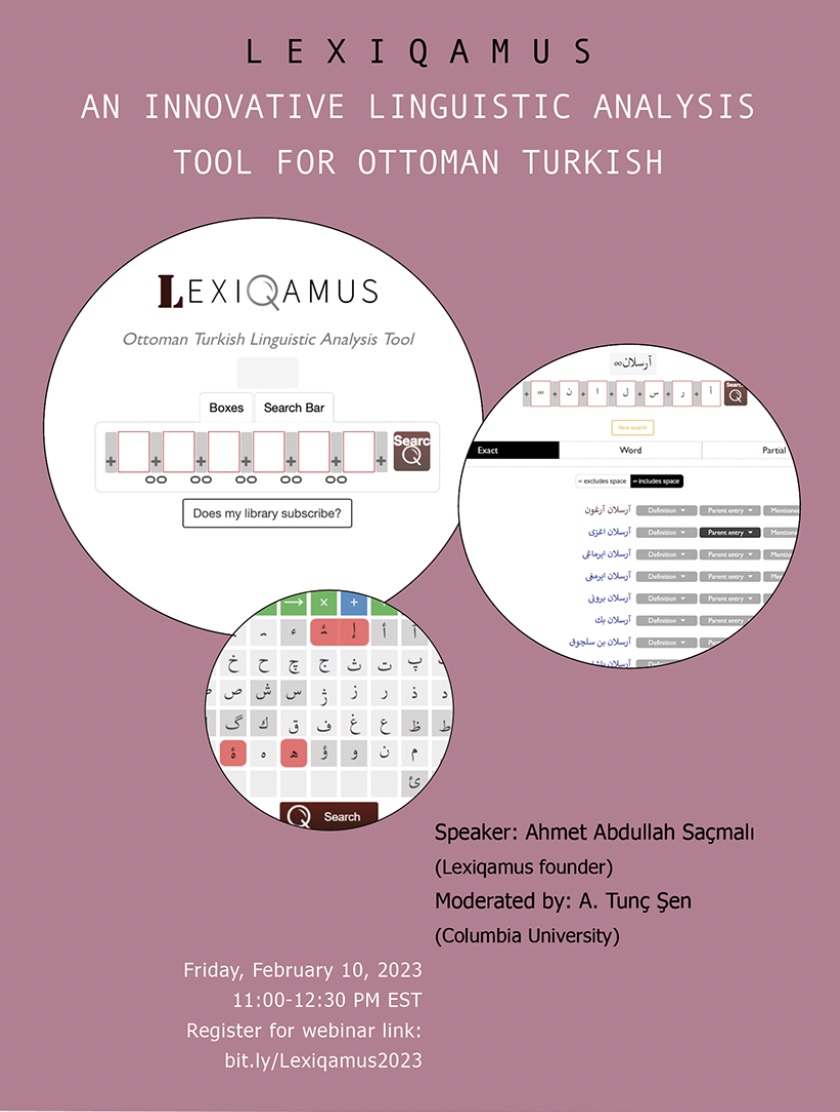 As infinite as internet resources may seem, when it comes to learning or translating Ottoman Turkish, options are rather limited. The available online dictionaries and their search engines are usually rudimentary and limited. This makes LexiQamus, a relatively new linguistic analysis tool developed specifically for analysing Ottoman Turkish, all the more exciting. The speaker at this event will be Ahmet Abdullah Saçmalı, the founder of LexiQamus.