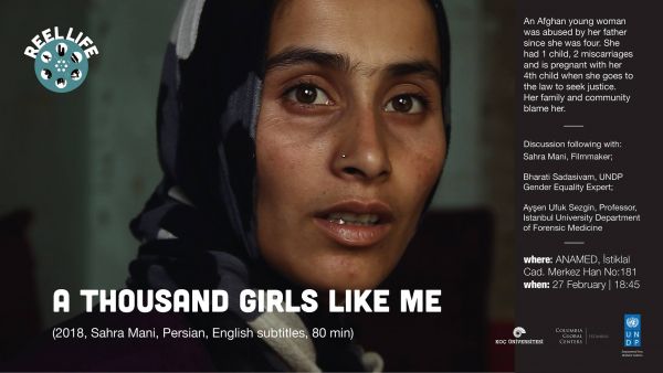 On February 27, the film A Thousand Girls Like Me will run, followed by a discussion with the filmmaker Sahra Mani Mosawi, UNDP Gender Equality expert Bharati Sadasivam and Professor Ayşen Ufuk Sezgin.