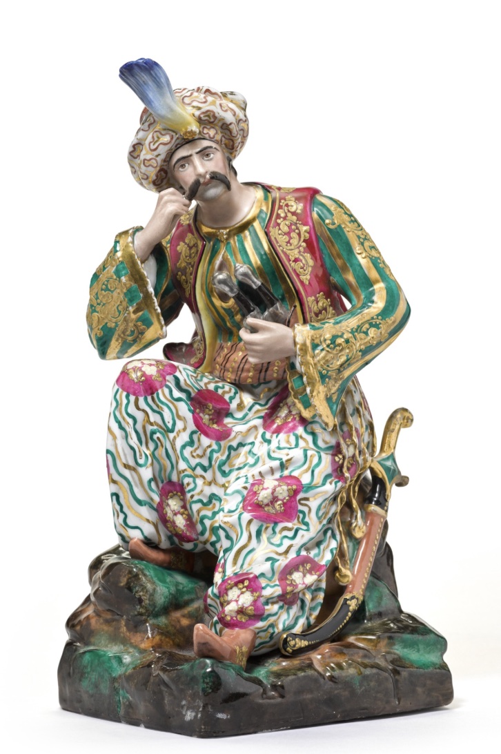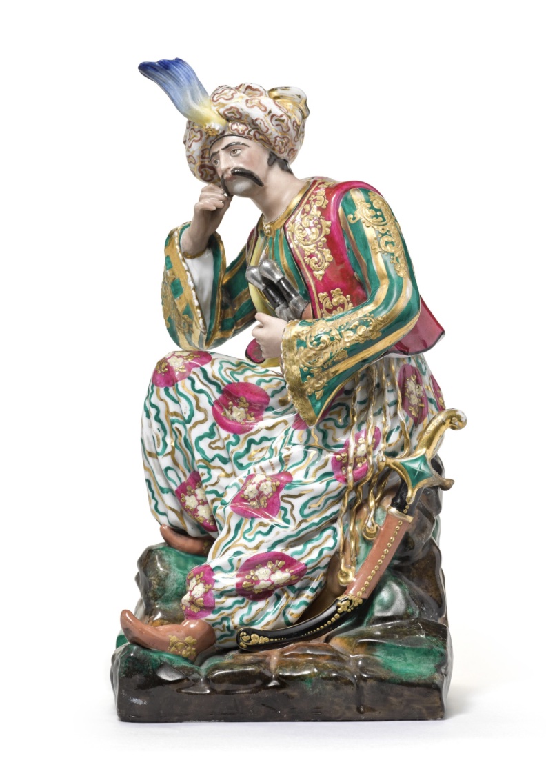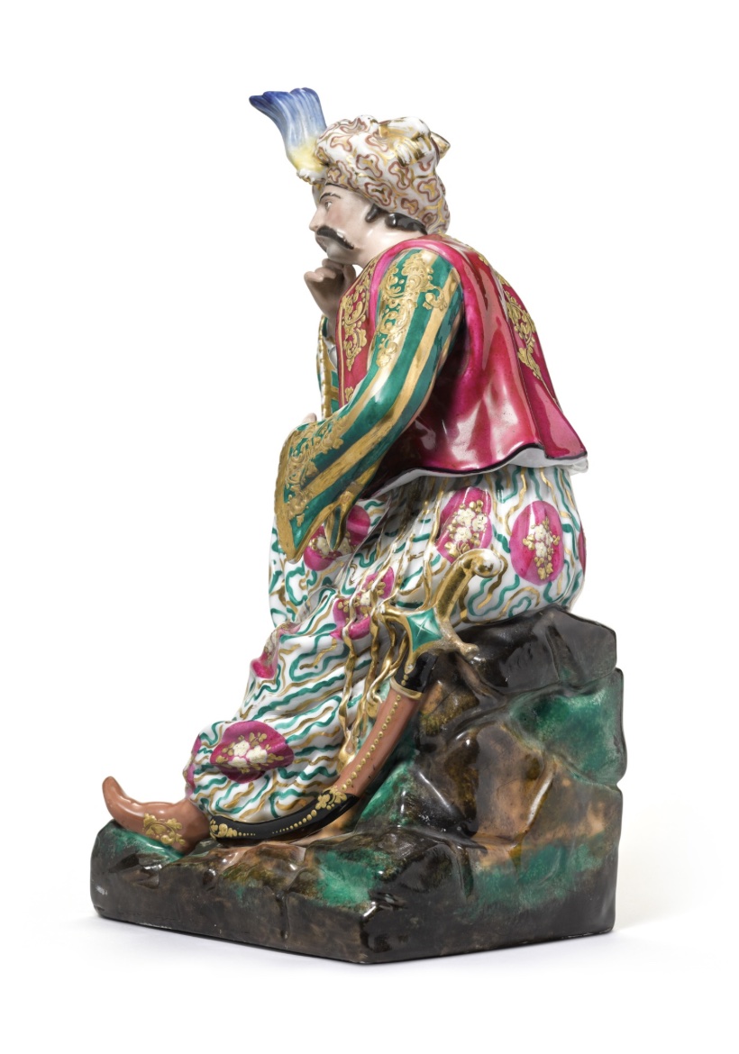 Just the thing for the dining table, porcelain figures such as this pensive 19th-century seated Sultan were a witty addition to the table decoration at a recent Divan Club dinner in Istanbul (Lot 256, est. £4,000–£6,000)