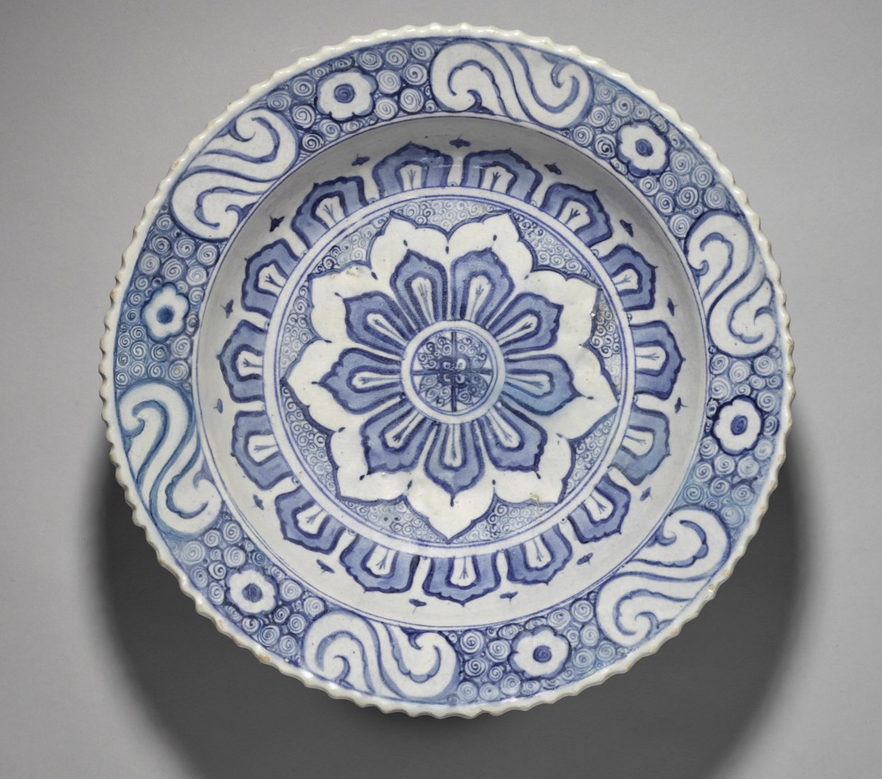 Lot 239, a striking Iznik cobalt blue-and-white Iznik tazza (footed bowl), circa 1580, exemplifies the enduring influence of Chinese porcelain in Ottoman design. The estimate id £50,000–£70,000.