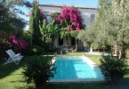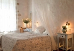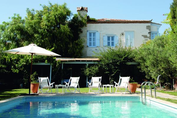 Zeynep Öziş’s delightful hotel and the house she built next door, in the same impeccable vernacular, featured in Berrin Torolsan and Solvi Dos Santos’s book of contemporary Turkish interiors, At Home in Turkey: ‘The ground floor of the house, which was used by previous owners as an olive-depot lined with huge terracotta vessels, serves today as a spacious and welcoming lobby and a library with a log fire and deep sofas, while the living quarters upstairs are transformed into bedrooms that are bright and delightful. Some rooms look down into the garden, with its small swimming pool shaded by cypresses, honeysuckle, jasmine and plumbago. Others look across the street to neighbouring gardens. The colour scheme, apart from the unplastered stone chimney breasts and plumbago-blue painted shutters, is many shades of white: whitewashed stones walls, white linen chair covers, white piqué beadspreads and white muslin curtains. The occasional piece of antique furniture – a chest of drawers Zeynep inherited from her family, an old wardrobe or a little drawing accentuate the cloud-like atmosphere… Thanks to Zeynep, this windy corner of the Aegean has become not only a mecca for sporty windsurfing types, but also a romantic literary retreat.’