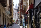 Galata seen from Seraglio Point and below, from Serdar Ekrem sok., one of the quaintest streets in the neighborhood. (photograph Monica Fritz)