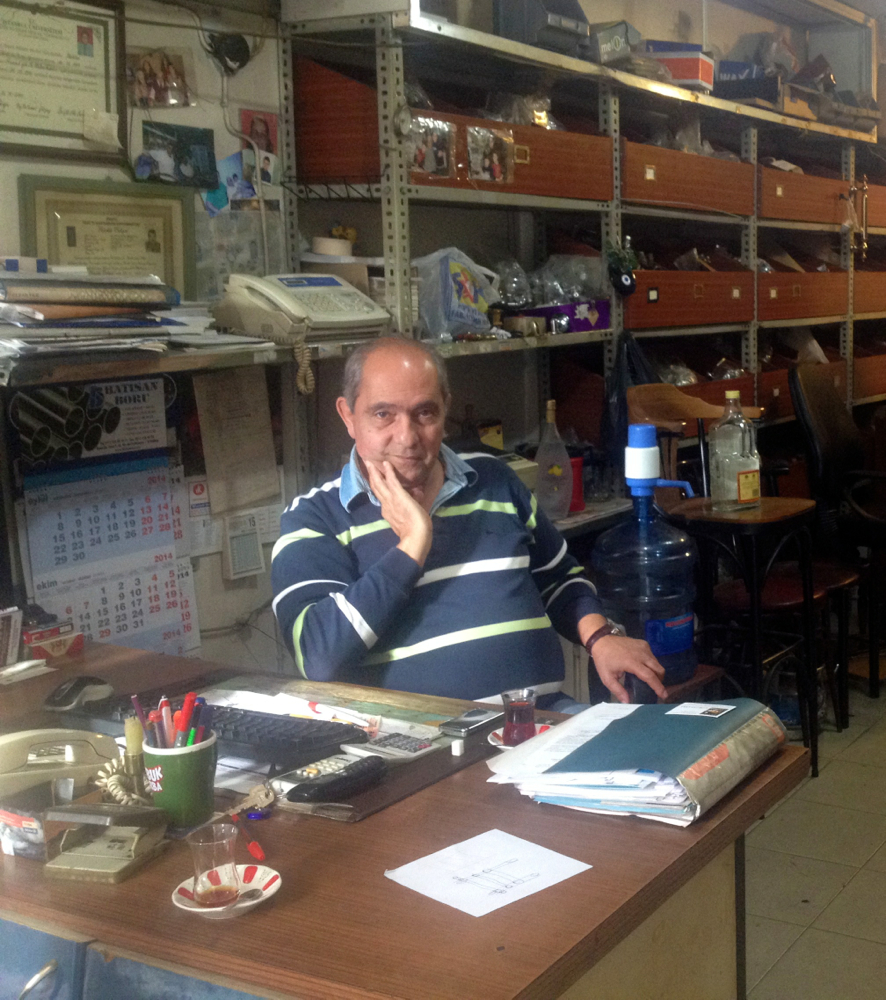 His neighbours in Karaköy’s brass-burnishers’ district include Halil İncir if you need anything burnished and Ismail Ay if you need anything made out of brass, especially propellors.