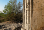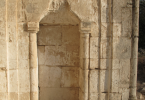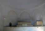 Her mausoleum is an octagon in plan, like the tomb of Hacı and Mengli Giray Khan, constructed, or reconstructed, at Salacık in the valley below Chufut Kale. It stands on the plateau outside the walls of Chufut Kale, with cliffs on either side – truly a tomb with a view. It is in excellent condition and is one of several fine examples of the Seljuk architecturural style in Crimea (see Oleksa Haiworonski). The portal is decorated with stone carving and flanking mihrab niches.