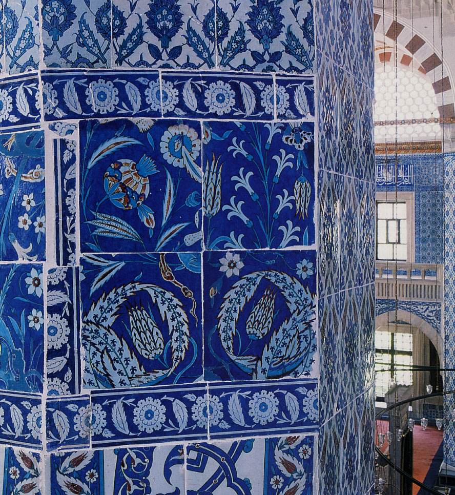 ‘The mosque was built in honour of the grand vizier Rüstem Pasha, by order of his wife Princess Mihrimah, Süleyman the Magnificent’s daughter… Reputedly the richest woman in the world, [she] chose to commemorate him with a garden – for the interior of the mosque is nothing less than that. And what a garden! Nobody in real life ever grew one that combined the natural flowers familiar to all Turks with the most unnatural chinoiserie deriving from the peony and the lotus, cloud scrolls and arabesques.