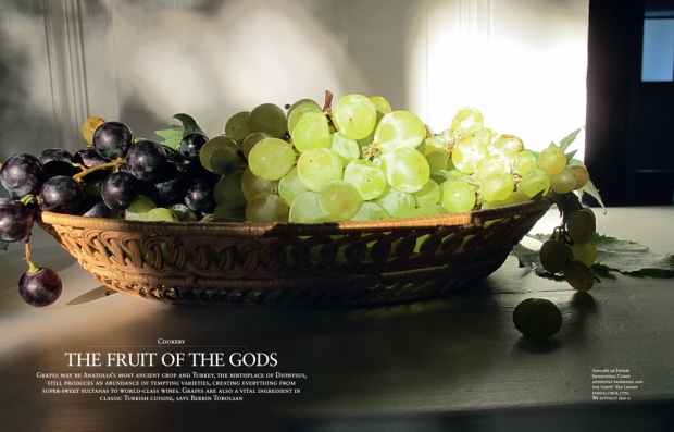Buy/gift a digital subscription Login to the Digital EditionGrapes may be Anatolia’s most ancient crop but the birthplace of Dionysus still produces an abundance of tempting varieties – from succulent bunches of fresh fruit to the sweetest of sultanas, and even world-class wines. Grapes also play a vital role in Classic Turkish Cuisine. Text and photograph by Berrin Torolsan