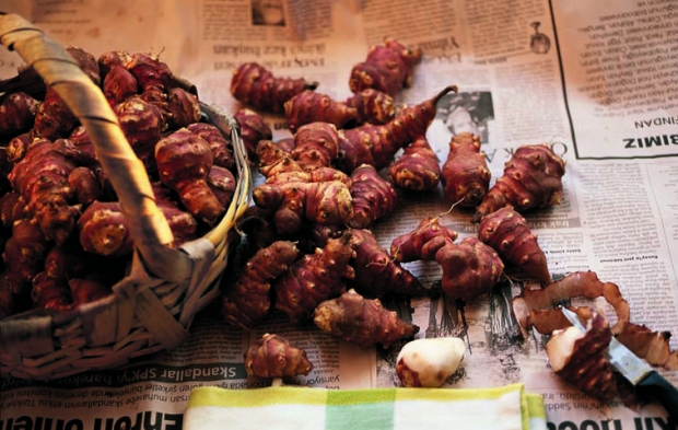 Nutritionally, the tuber has valuable properties: as a diuretic, it benefits the kidneys; it stimulates the milk of nursing mothers; and it is considered a potent aphrodisiac. But what makes it most unusual is that, thanks to the interesting substance inulin, it tastes mildly sweet but does not interfere with blood-sugar levels and is therefore well tolerated by diabetics. Inulin is hard to digest, however – hence the vegetable’s reputation for causing flatulence. The answer is to do as the Turks do: add a little rice to the cooking and a garnish of fresh parsley or mint at the end, to make it more digestible.