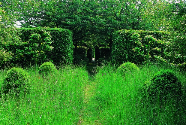 These outside rooms with hedges for walls, against which roses are planted to imitate furniture, use tree canopies or the sky as elaborate ceilings. Each room has a different planting scheme – Turkish plants, or wild flowers in grass, or formal borders leading to a high-hedged enclosure tightly packed with plants available to gardeners in England before 1660.