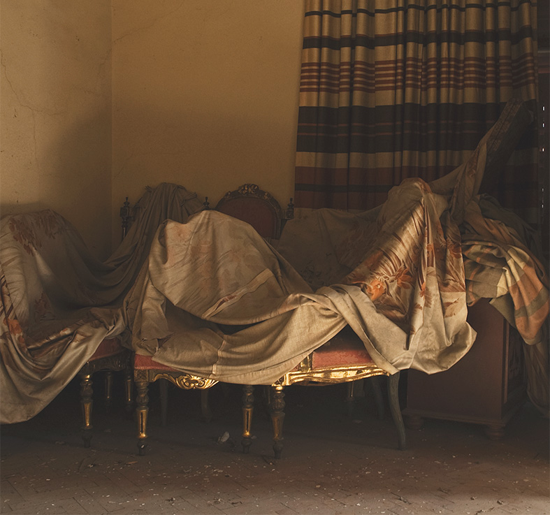 In much the same spirit, he welcomes in the viewer. As in the work of Zafer and Barbara Baran, whom he cites as his artistic mentors, his images undo any attempt at detachment. As our eyes wander into these darkened spaces, our minds conjure up the people who once lived here, dusting and polishing their dreams. Slowly their voices penetrate the silence. Soft and comforting, they waft through the walls that pain builds around the past, reminding us that even here, amidst the chipped paint, there is beauty.