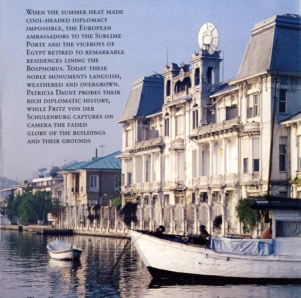 Buy/gift a digital subscription Login to the Digital EditionWhen the summer heat made cool-headed diplomacy impossible, the ambassadors to the Sublime Porte retired to remarkable residences lining the Bosphorus. Patricia Daunt probes their rich diplomatic history, while Fritz von der Schulenburg captures the faded glory of the buildings and their grounds