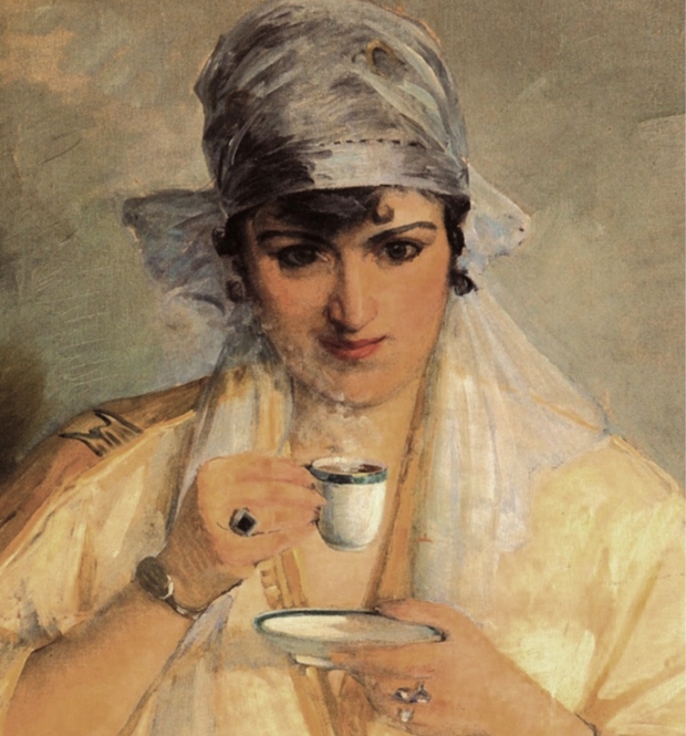 Certain facts emerge as relatively concrete: Mihri Rasim was born in 1886 to a noble Abkhazian family. Her aunt was married to the Sultan, and her father, an anatomist, was rector of the Imperial Medical School. Mihri began painting at an early age, and on the recommendation of Abdülhamid II, to whom she presented a portrait during a family visit, she took lessons from the last Ottoman court painter, Fausto Zonaro.