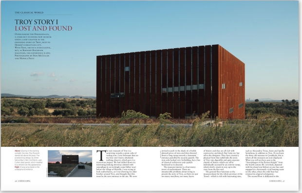 Buy/gift a digital subscription Login to the Digital EditionOverlooking the Dardanelles, a stark but stunning new museum opens a new chapter in the enduring story of Troy, next to Homer’s embattled city. With Troy, truth is ever elusive, but, as Barnaby Rogerson discovers, the experience is epic. Photographs by Don McCullin and Monica Fritz