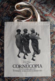 Designed exclusively for Cornucopia by Rıfat Özbek in 2009, limited numbers of this cotton tote are still available for £6/$10 post-free worldwide