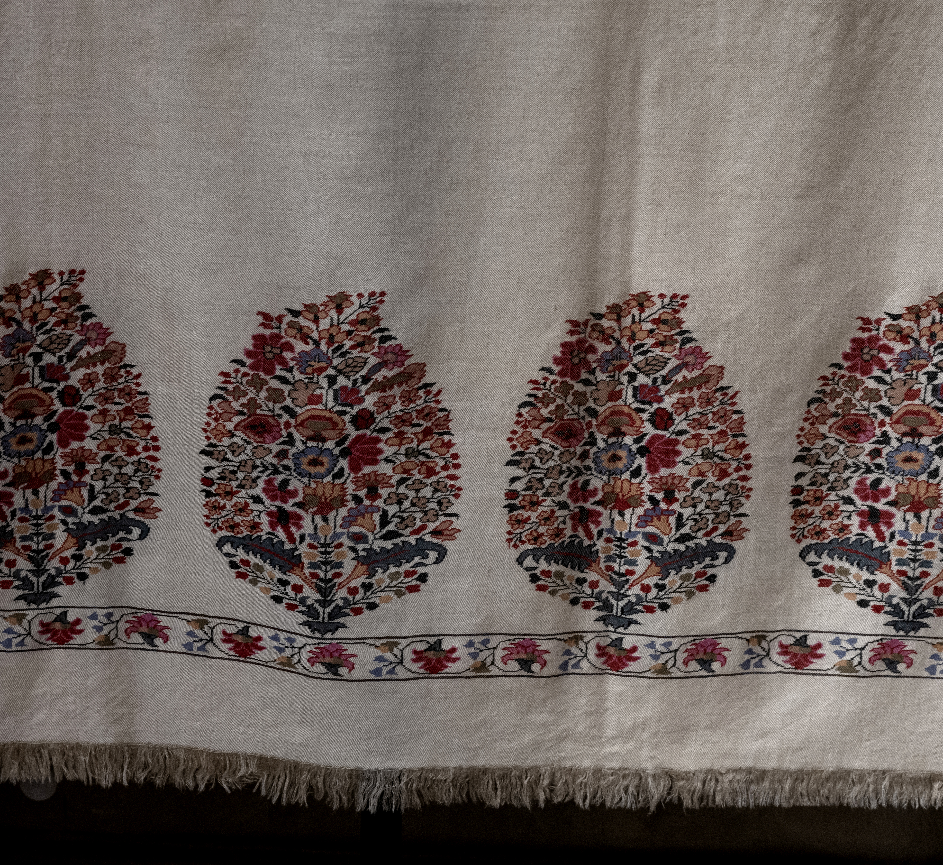 Hand-embroidered Palledar shawl from Kashmir, by Kashmir Loom