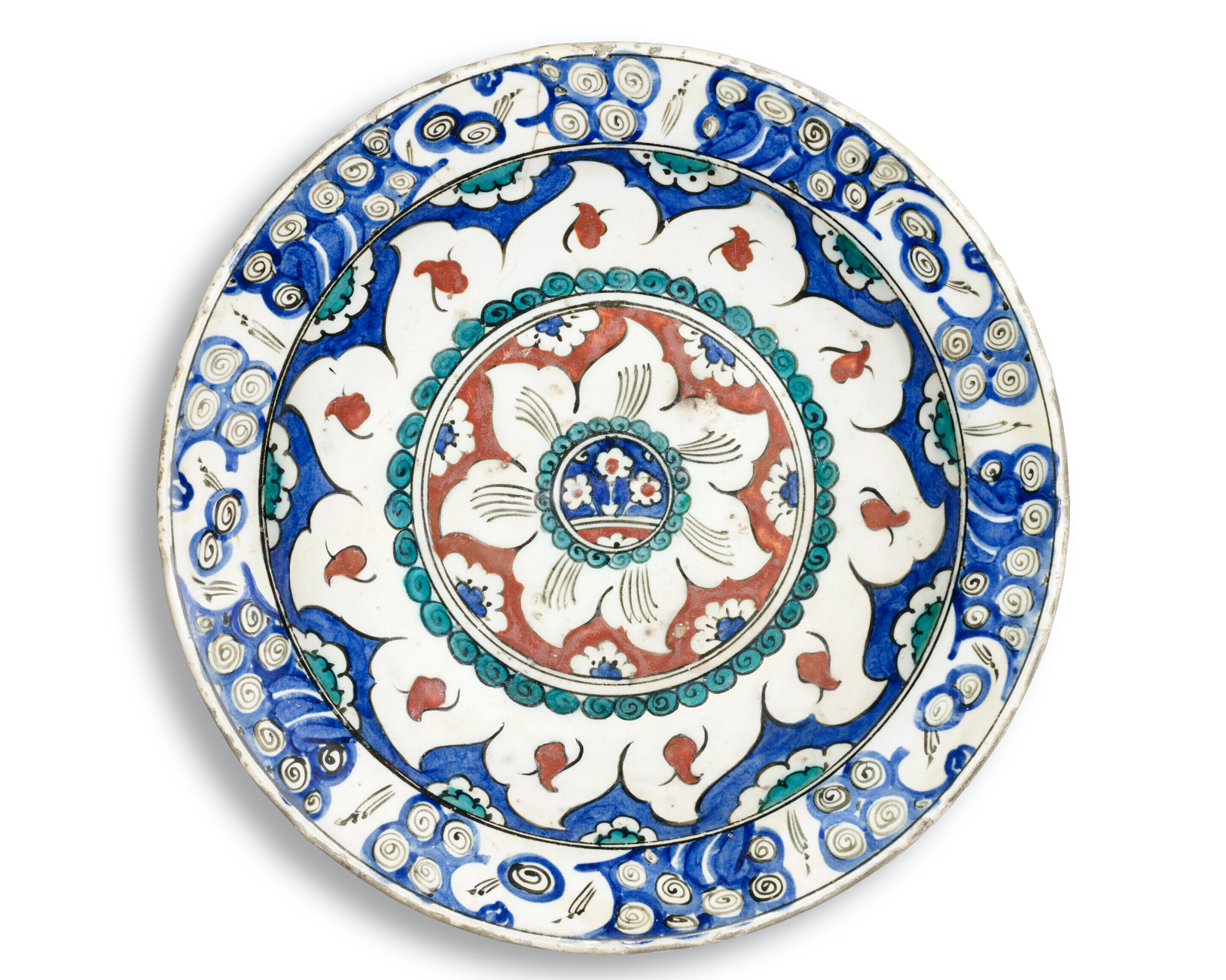 Returning to Ottoman Turkey, one of two spectacular bowls at Christie's on March 31 is this dish from the 1590s, with a whirling flowerhead design (Lot 107, £20,000–30,000)