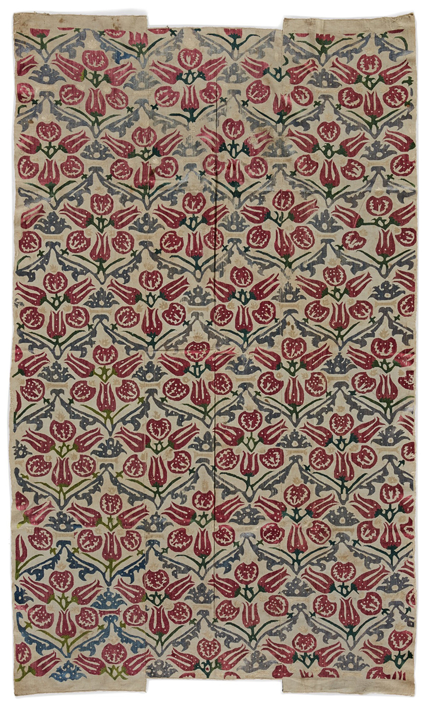 Carnations – sprays of them – are at the heart of this confident 17th-century Ottoman voided silk velvet. Bursa velvets were much sought after for ecclesiatical use by Orthodox Russians, so it is not surprising that Nurhan Atasoy discovered a similar piece in a monastery in Russia, donated in 1652 by a member of the court of Peter the Great. She published it in İpek: The Cresent and the Rose. (Istanbul, 2001). Lot 139, at Sotheby's on the 30th, the velvet is a metre long and carries an estimate of £12,000–15,000.