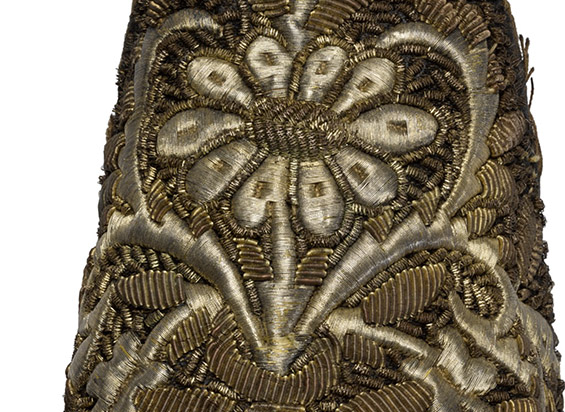 The Ottoman passion for flowers inevitably found its way on to exquisite footwear, such as these 18th- or early-19th-century embroidered slippers with a distinctive zig-zag pattern on the side (Sotheby's Lot 149, est £4,000–6,000).