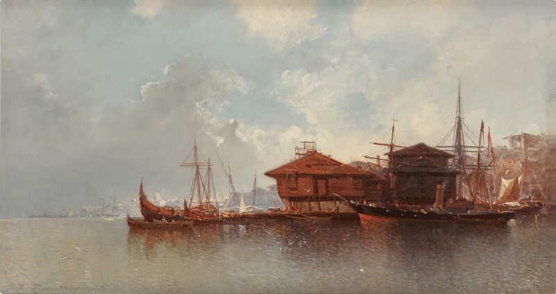 The Bosphorus sky inspired this oil by Jean-Baptiste-Henri Durand-Brager (1814–1879). Lot 30 (est. £8000–12,000). It is hard to tell precisely where it is, the Golden Horn, perhaps, around Fener, with the Süleymaniye lit up in the distance. Or Kabataş on the Bosphorus. It is the mood that metters. You feel the mist.