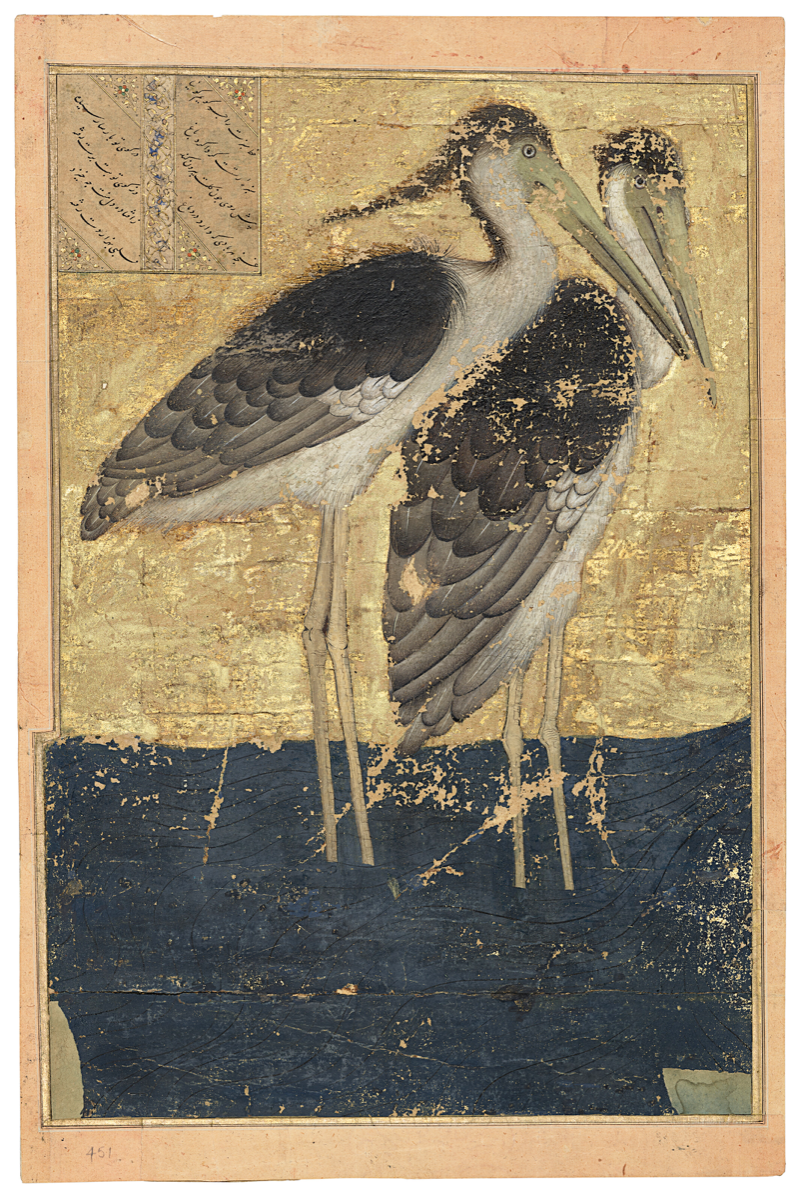 Courtly art took many forms and traditions lived on for centuries Lot 29 at Christie's is two album pages painted in the manner of 14th-century miniatures, but probably in the 19th or 20th century.