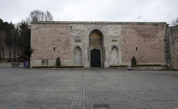 Alone in front of the gates of Topkapı Sarayı, usually crammed with tourists visiting the palace.