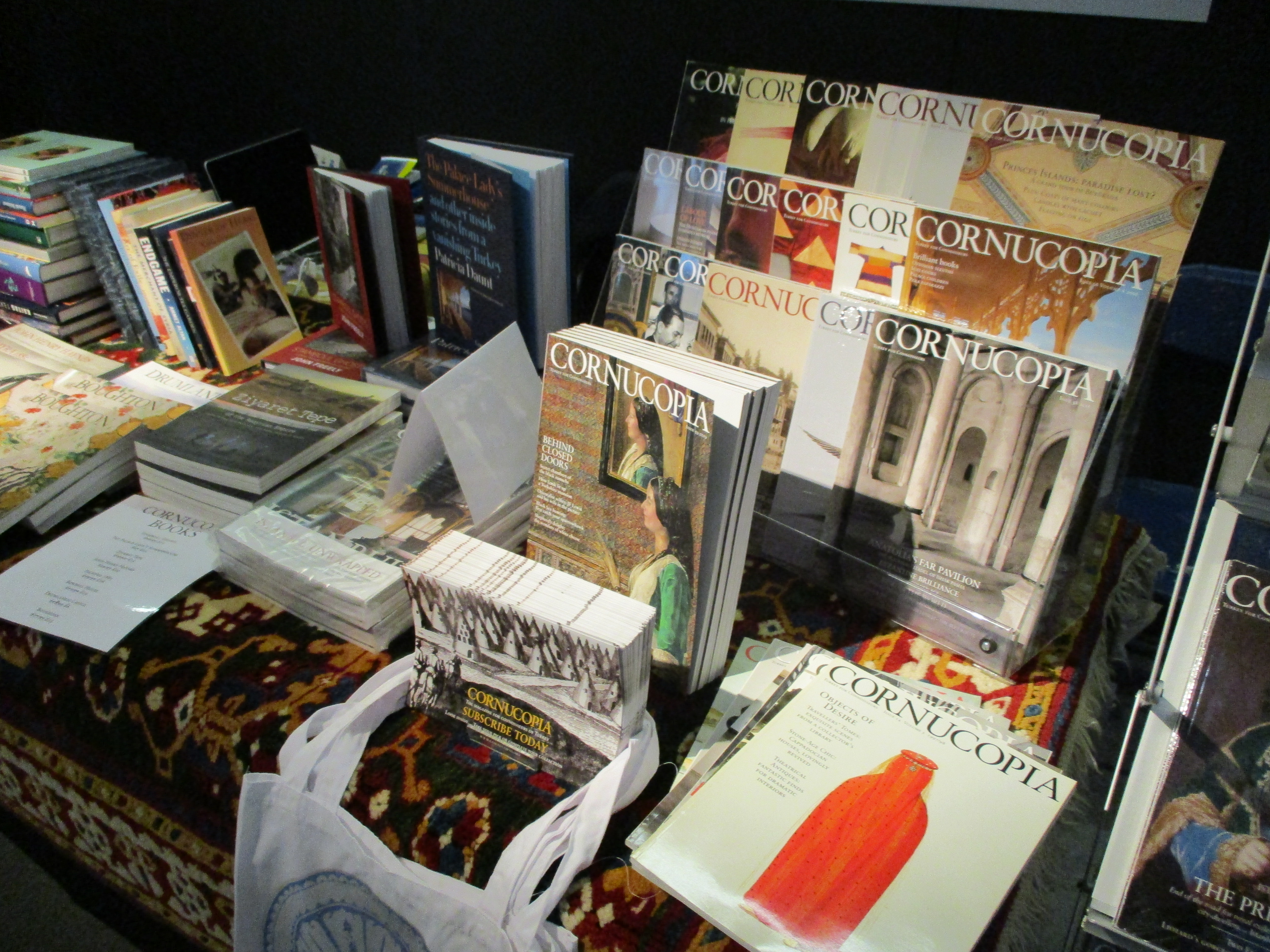 Daniel and Sean (above), down from the headquarters of the Cornucopia empire in Hawick, are manning the Cornucopia bookstall, with its latest selection of books as well as issue No.59, just out, which joins the impressive array of collectable back numbers dating back a more youthful 27 years. The fine rug that covers the stall is a modern copy of a traditional design woven in the time-honoured way on looms in Anatolia, and is on loan from Clive Rogers. The fair, which started this afternoon, is open 11am-6pm on Friday and Saturday, and 11am-3pm on Sunday.