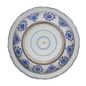Another notable work in the Islamic Sale on Wednesday is the largest known Iznik pottery ‘grape’ dish, circa 1530 (Lot 230). The magnificent charger, Lot 230, which features on the back cover of the issue. Like so much Iznik of the period, it was inspired by blue and white Yuan dynasty porcelain, as John Carswell so lucidly describes in An Odyssey in Blue and White (Cornucopia 25). At 44.5cm in diameter, it also rivals them in size, but the design is no mere copy. It is breathtakingly fluid.