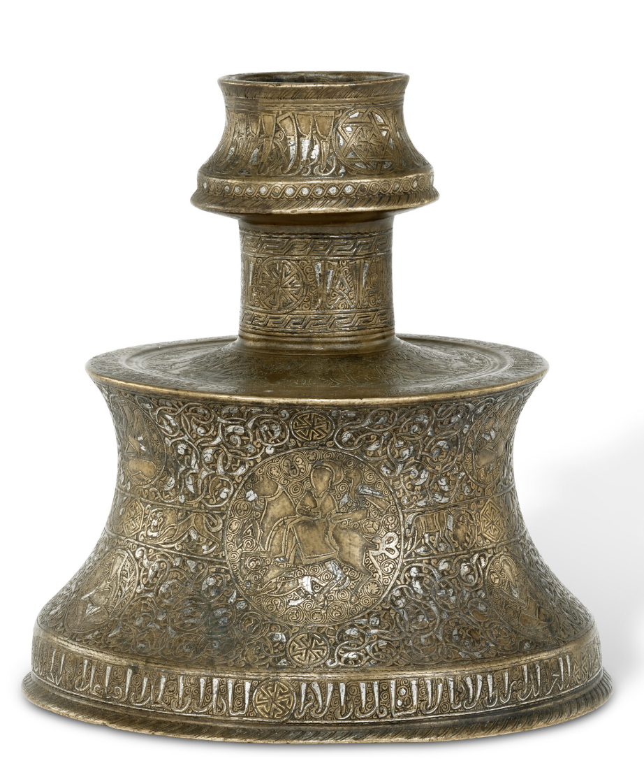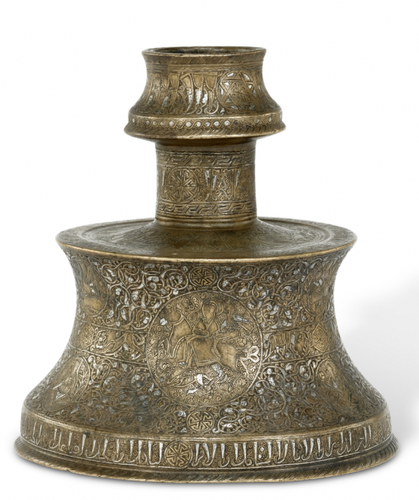 Highlights include a splendid mid-13th-century Anatolian Selçuk candlestick, Lot 26, estimate £30,000–50,000.