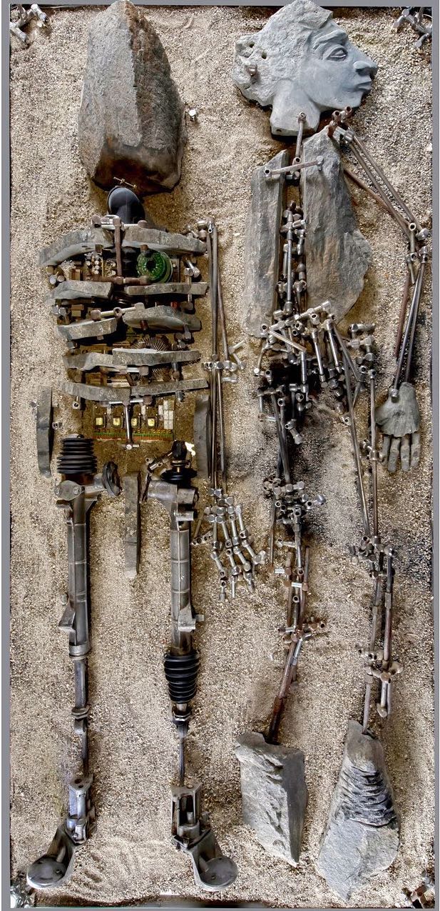 Working in resin and industrial and natural recycled materials, Karakaya grapples with impressions of individuals trapped in the chaos of modern city life. His interpretation of the complex structure of daily life is full of symbolism and attempts to establish a relationship between the past and the present.