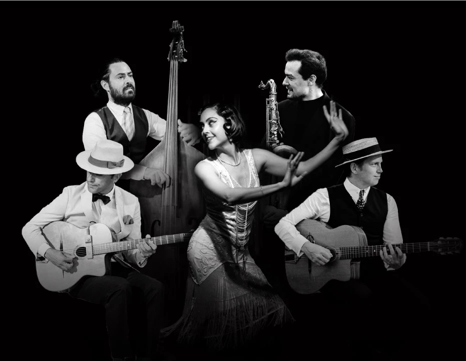 Flapper Swing is a group that keeps alive the musical atmosphere of the roaring 1920s – ‘the times when jazz was still fun’. It has five members: Nevin Hetmanek on vocals, Erhan Erbelger and Tomas Hetmanek on guitars, Volkan Topakoğlu on double bass and Batu Şallıel on soprano saxophone. (I believe Tomas Hetmanek hails from the Czech Republic.) They appear on stage in 1920s costume, but the audience is at liberty to dress as they will.