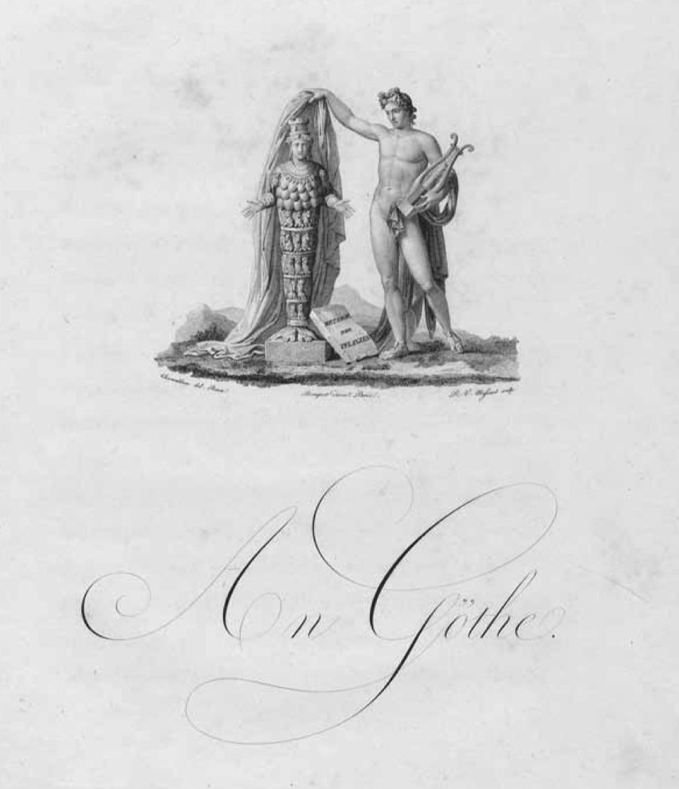 Frontispiece to the German translation of Alexander von Humboldt’s *Ideen zu einer Geographie der Pflanzen nebst ein Naturgemälde der Tropenlander* (1807), after a drawing by Bertel Thorvaldsen. It shows a statue of Artemis of Ephesus being unveiled by Apollo. (Yale Collection of German Literature, Beinecke Rare Book and Manuscript Library, Yale University.). From Frederika Tevebring's paper Unveiling the Goddess: Artemis of Ephesus as a symbol of nature at the turn of the nineteenth century