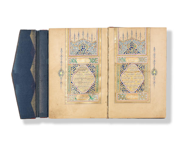 Bonhams kicks off Islamic Sales Week in London. Among the handful of Turkish items in their Islamic and Indian Sale is this beautiful copy of Quran, dated 1852-53 and illuminated by Husain Al-Zahidi, a pupil of Ahmad Al-Nazifi.