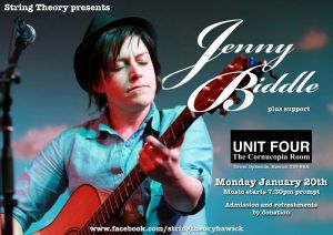 “Jenny Biddle, wraps herself around her guitar, and like a marriage between body and instrument, she commands the guitar to talk with uncommon skill and absolute self-assurance” (Syke, 2013).