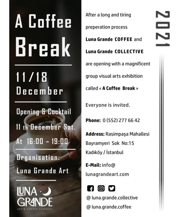 Fortunately, Luna Grande Art, established in 2019 and one of the largest galleries in the neighborhood, has been working tirelessly to showcase artists from Turkey and around the world in their mixed visual arts shows. Their next show, Coffee Breaks, will be open from 11 December (opening reception and cocktails from 16.00 to 19.00) to 18 December.