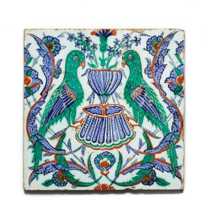 A highly rare polychrome Iznik tile with confronted birds, Turkey, circa 1575