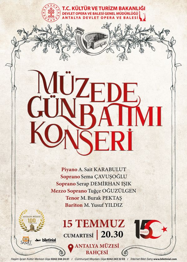 Pianist A Sait Karabulut accompanies sopranos Sema Çavuşoğlu and Serap Demirhan İşık, mezzo soprano Tuğce Oğuzülgen, tenor M Burak Pektaş and baritone M Yusuf Yıldız in a recital in the garden of one of the great museums of classical sculpture.