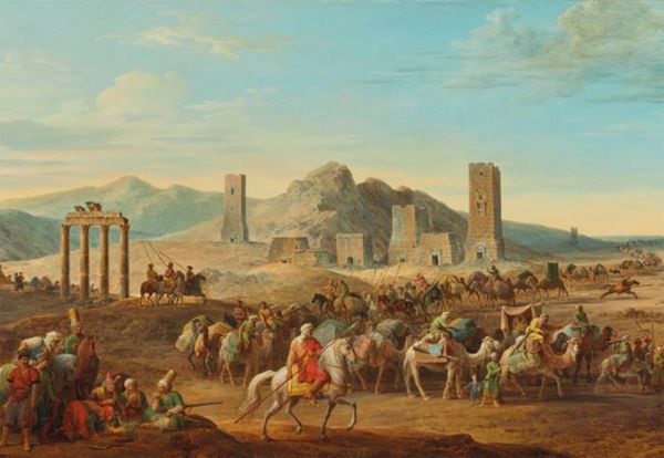 Jean Baptiste Hilair. Camel Caravans in Palmyra c 1785. (Artcuriel) Since 1691 western travellers had begun to draw the ruins of Palmyra.