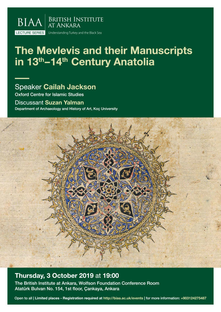 Several illuminated Anatolian manuscripts remain from the late thirteenth and fourteenth centuries. Many of these feature lavish ornamentation and contain rich historical details concerning the involvement of Mevlevi scribes and patrons. However, this material remains relatively neglected in broader surveys of Islamic art. This talk will partially address this gap in scholarship by discussing the arts of the book in the context of early Mevlevi activities in Anatolia. These manuscripts, all works by Jalal al-Din Rumi (d. 1273) and his son Sultan Walad (d. 1312), represent the earliest illuminated material produced by and for Mevlevi devotees. Many centuries later, they survive as a testament to the skill, creativity and devotion of the Sufi group.