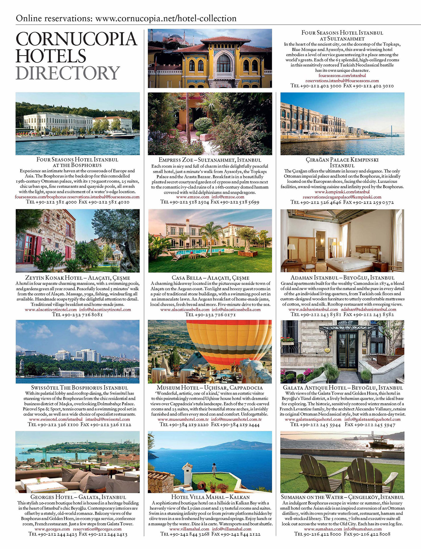 Buy/gift a digital subscription Login to the Digital EditionThe Cornucopia Hotel Collection works in partnership with select hotels and booking.com to ensure ease of booking and the very best rates. Regrettably, the authorities are currently blocking access to the Netherlands-based reservation system for people living in Turkey as they have done in recent years with youtube and twitter. This does not affect readers living abroad.