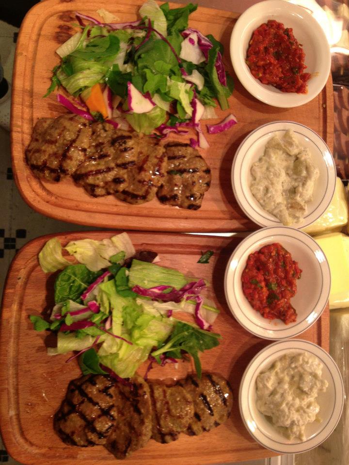 Ingredients: 4 egg; 1 or 2 slices stale bread, soaked in water; 500g minced lamb or veal; 1 medium onion (grated); 2 teaspoons cumin powder; 2 teaspoons freshly ground black pepper; salt; 1 cup parsley (chopped); 1 tablespoon olive oil
