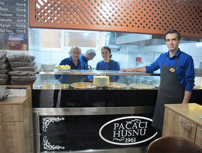 Buy/gift a digital subscription Login to the Digital EditionBursa’s (actually the world’s) best offal soup (paça) shop: the immaculate Pacacı Hüsnü. Like many Bursa citizens, Hüsnü is originally from the Balkans. Veal, vinegar and garlic are the main ingredients of his soups, always rich but delicate, and always the tastiest bits: there’s tongue (dil), tripe, finely chopped (iskembe) or chunky (tuzlama), head (kelle), trotter (ayak), or a mix, or a mix with more stew than soup. Served in a trice in a smart, newly enlarged (but not too large) shop run by Fatma, Hüsnü’s daughter and her husband, while Paçacı Hüsnü himself (in the glasses) is up at 5 every morning readying the next day’s offerings – each bowl takes a full 12 hours to cook. Just remember that the soup is just about finished by 1 and work is underway on another 12 hours of cooking.