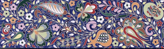 Rustem goes for bold, chunky forms. The motifs may be inspired by the Iznik/Kütahya repertoire, but he has developed a distinctive pallete: flatter and more restrained in tone than the brilliant underglaze-painted work current in Turkey, and closer to that of 19th-century European tiles. Blues, yellows, reds and greens are often outlined in brown, recalling the pre-Iznik cuerda seca work found in the Murad II Mosque in Edirne. His tile panels were in great demand on Crimea’s fashionable Yalta Riviera. Rustem also produces glazed, unpainted classical pottery.