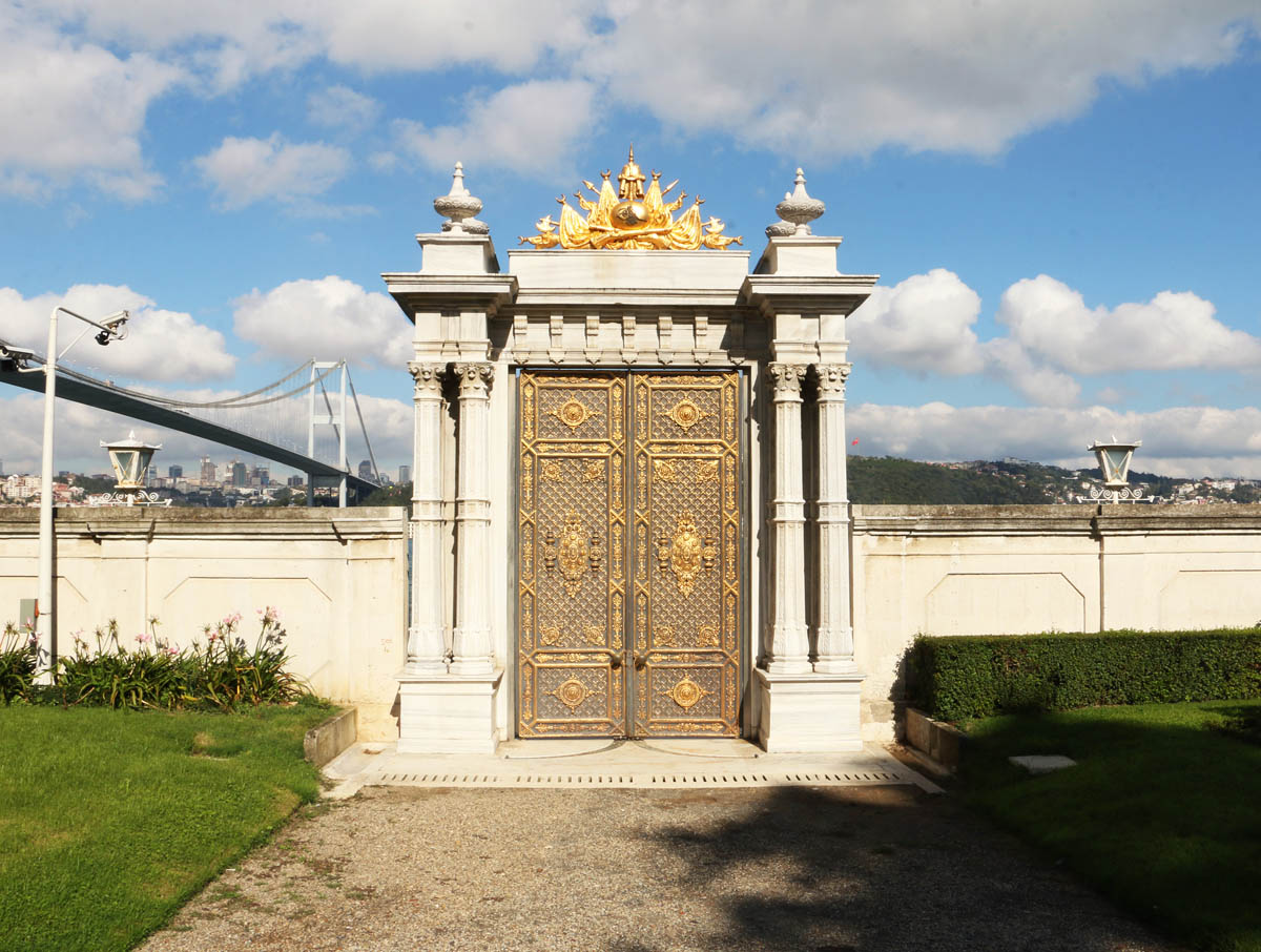 The palace’s exterior, graced with numerous columns, has carved garlands of fig and quince. Inside, allusions to the sea abound: ships in the ceiling frescoes, knots in the gilt plaster, and a dolphin fountain in the Havuzlu (Pool) Room.